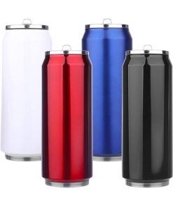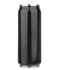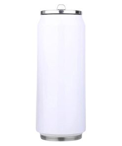 Smart can-shaped design of 500ml BPA free stainless steel double wall drink bottle shiny gloss finishing vacuum insulated with a screw on stainless steel lid which has a plastic flip-out drinking nozzle with a straw engraves to a natural silver etch colour. This product is not dishwasher safe handwashing is recommended.
