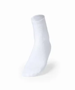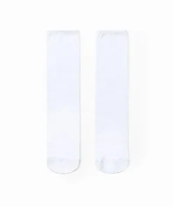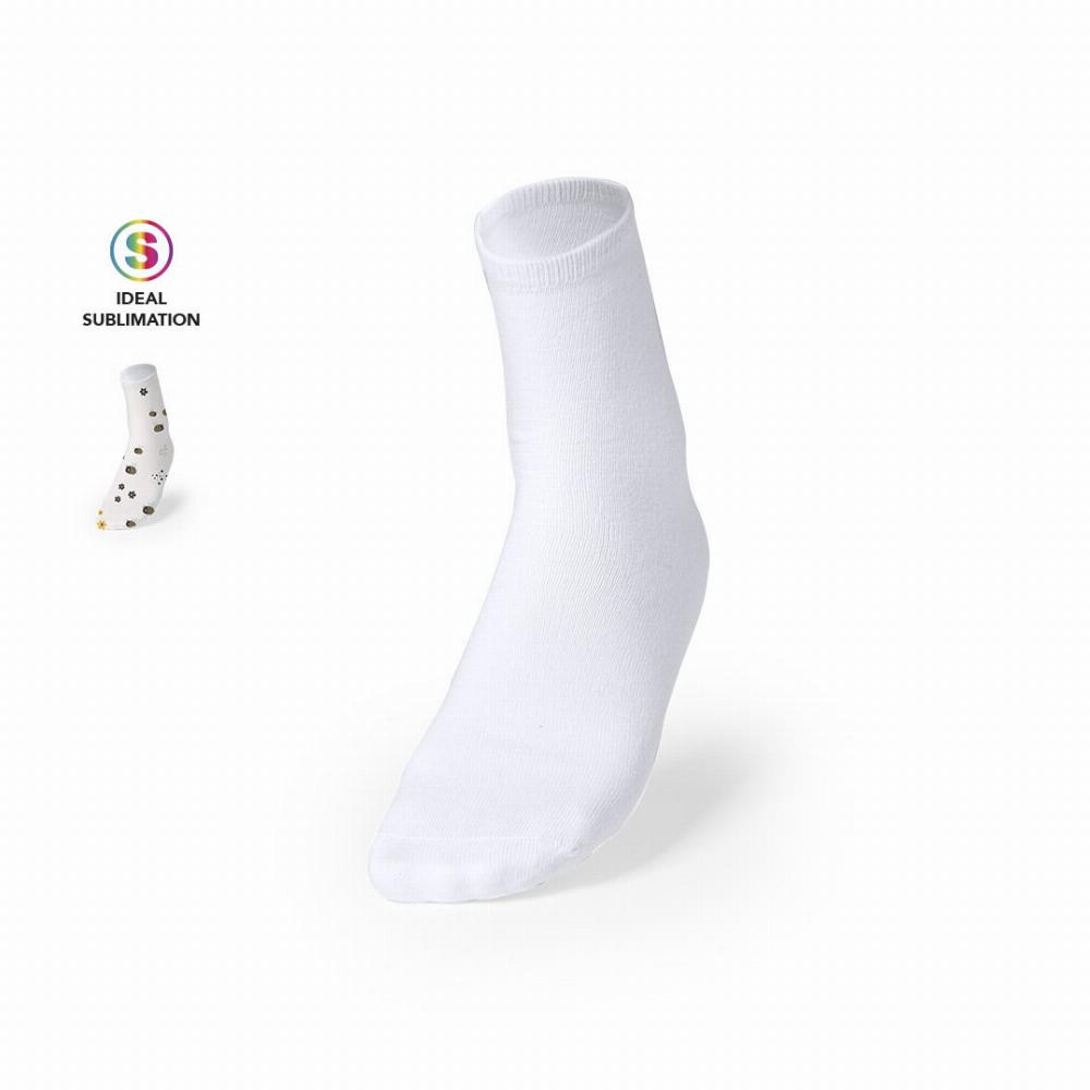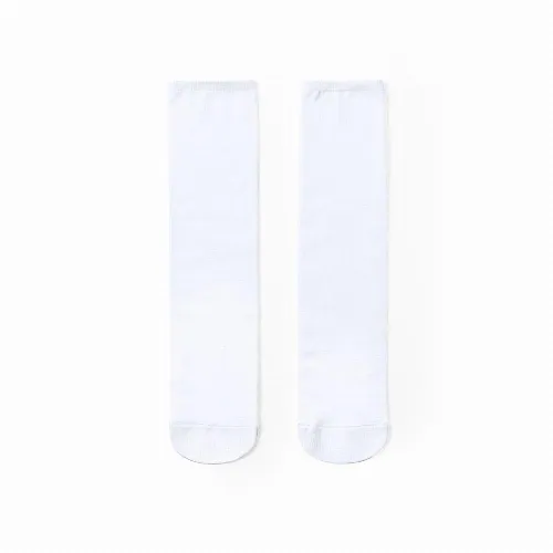 Pair of socks made of white polyester and specially designed for sublimation printing.