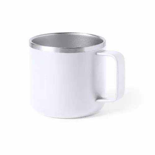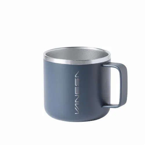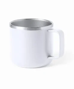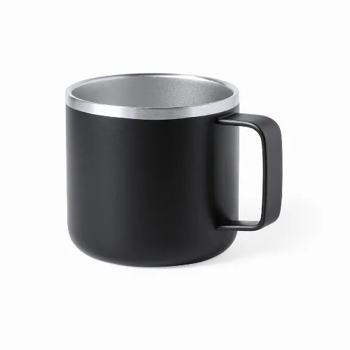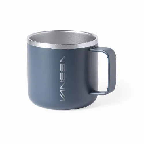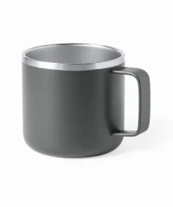 Double wall stainless steel mug with 350ml capacity.