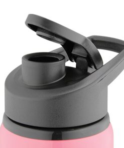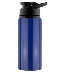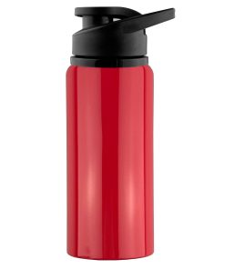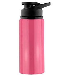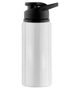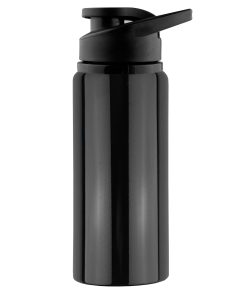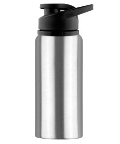 600ml BPA free aluminium single wall drink bottle with a smart shiny finishing a secure screw on plastic flip closure lid with carry handle laser engraves to a silver colour finish it is not dishwasher safe handwashing is recommended.