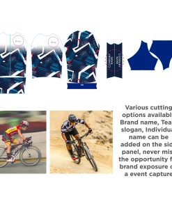 Look great while on the bike, with your own custom cycling jerseys. This Cycling Jersey features full surface sublimation print, on both the front back, and side panels. Comes with a small standard collar, for comfort, and a central front zip for easy opening. Made from a lightweight polyester stretch-jersey fabric, with mesh texture for breathability. There are 3 standard pockets on the back of the jersey, convenient for storing cycling essentials. Back reflective elements enhance visibility at night, improving the safety of outdoor sports. Additional options include adding individual names and numbers to the front and back, chest or arms.