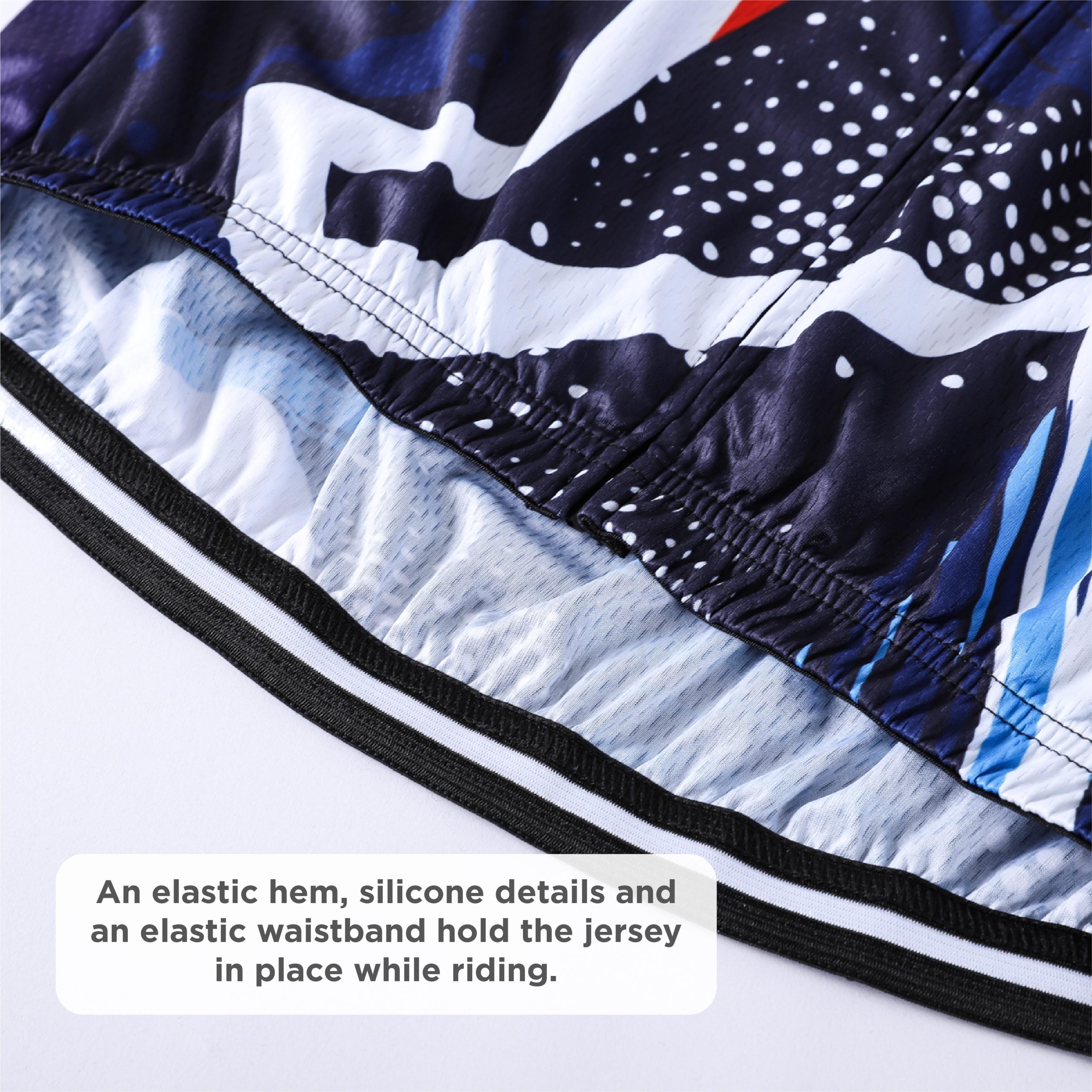 - 3 standard pockets on the back of the jersey, convenient for storing cycling essentials